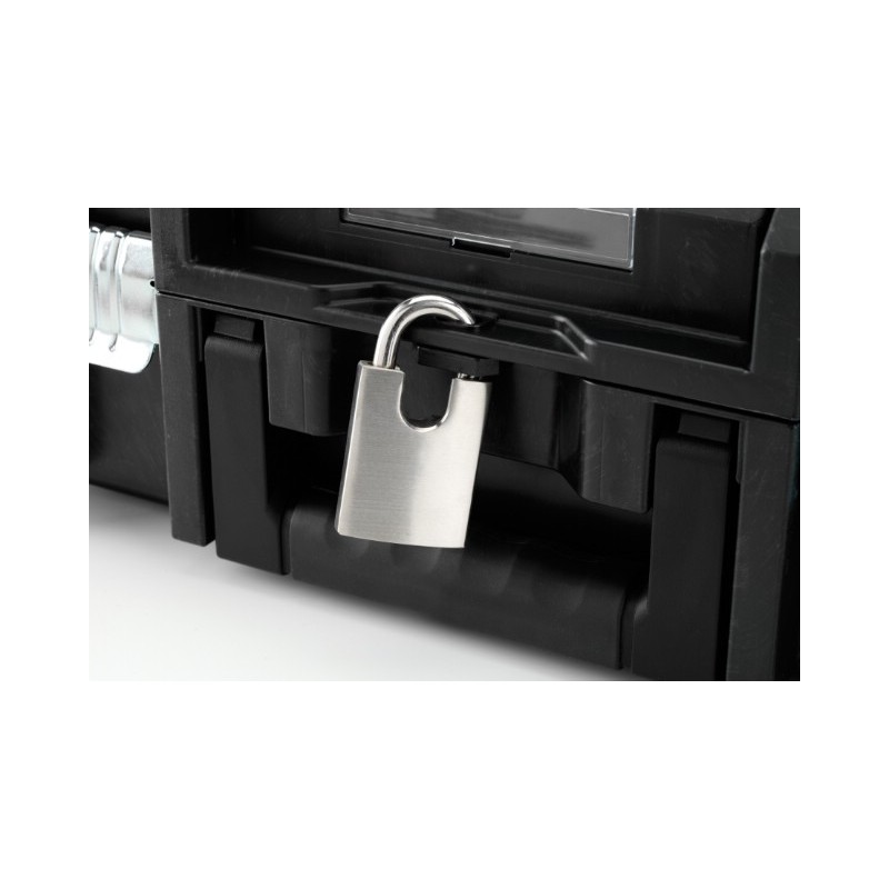 Der Organizer wurde gemäß der entsprechenden Wasserdichtigkeitsklasse hergestellt. Dank dieser Norm ist das Produkt spritzwassergeschützt und Sie müssen sich keine Sorgen um Schäden an Ihren Werkzeugen machen. Dies ist den verwendeten Dichtungssystemen oder Materialien zu verdanken. Dank dieser Eigenschaft schützen Sie den wertvollen Inhalt Ihres Organizers. Produkte mit dieser Eigenschaft sind für den Einsatz unter extremen Bedingungen ausgelegt – Wasser oder Feuchtigkeit können ihnen nichts anhaben.