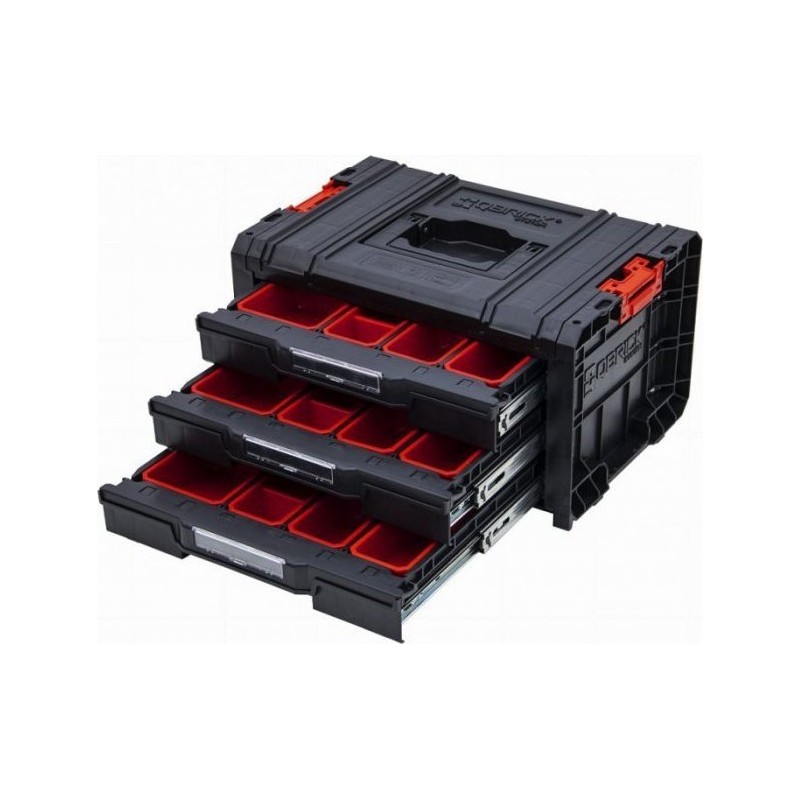 Technische Daten: Abmessungen (mm): 450 x 320 x 240 WERKZEUGKASTEN QBRICK PRO DRAWER 3 TOOLBOX EXPERT Kasten mit drei Schubladen Doppelte Polyamid-Verbindungsstücke zum Zusammenfügen weiterer Module der PRO-Serie (500, Toolcase, Technician Case, Toolbox, Organizer 100, 200 und 300) sowie ONE (Vario, Adapter Multi) Verstärkte Konstruktion Drei niedrige Schubladen mit Behältern (21 Stück) und verstellbaren Trennwänden (9 Stück) Befestigung zur Wandmontage Automatisches Schubladenverriegelungssystem Metallschienen zum Ausziehen der Schubladen Etikettenfeld mit Polycarbonat-Abdeckung Komfortabler Griff**...