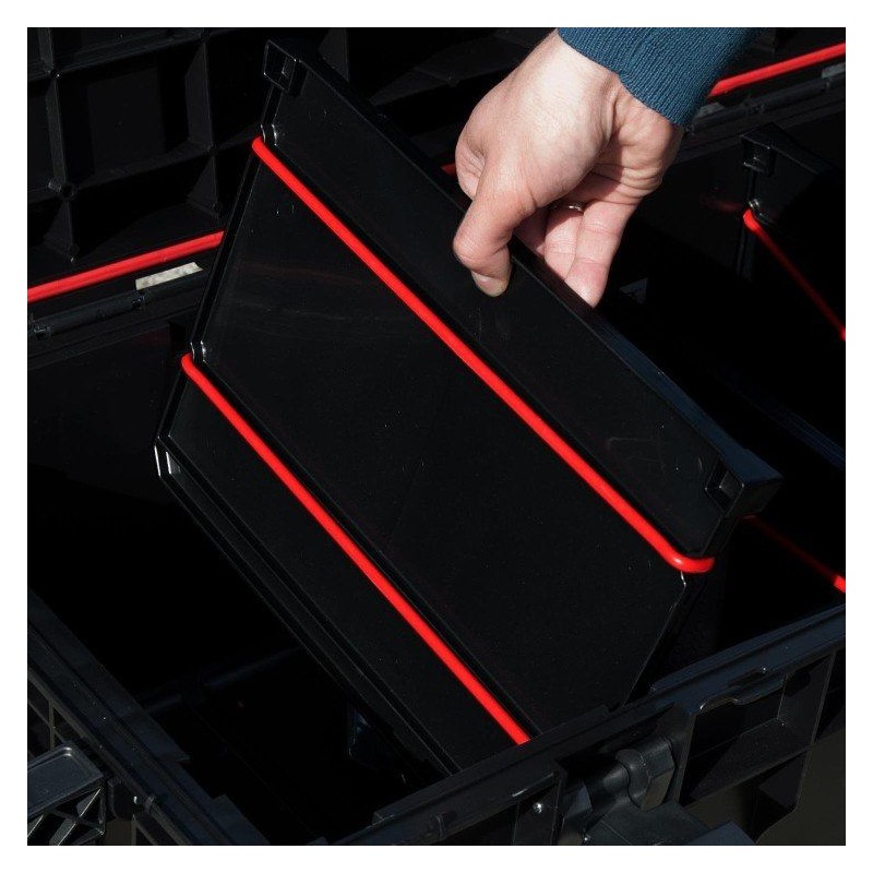 Unabhängig davon, ob es um die praktische Handhabung beim Transport oder beim Einräumen geht, ist die Transparenz des Materials, aus dem der Organizer gefertigt ist, ein sehr wichtiger und praktischer Vorteil. Die in einem solchen Produkt untergebrachten Gegenstände sind sehr gut sichtbar und lassen sich leicht im Regal finden. Dadurch müssen Sie sich nie wieder mit der Suche nach dem richtigen Gegenstand abmühen; ein Blick auf die Box genügt, und Sie finden den gewünschten Gegenstand sofort. Und das alles, ohne den Organizer selbst öffnen zu müssen. Das steigert Ihre Arbeitseffizienz.