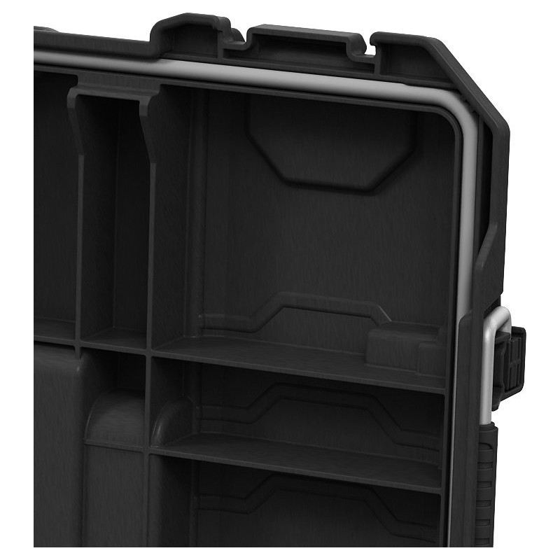 Die robuste Konstruktion ermöglicht den Transport schwerer Werkzeuge, und der profilierte Deckel sorgt für eine optimale Aufteilung, wodurch die Aufbewahrung der Werkzeuge flexibler wird.