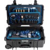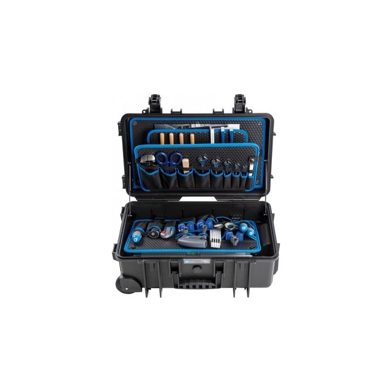 Der Jumbo 6600 macht seinem Namen alle Ehre und ist ein wirklich robustes Gehäuse. Er hält selbst den härtesten Bedingungen stand und schützt den Inhalt vor Stößen, Staub und Spritzwasser. All dies macht diesen Werkzeugkoffer zu einem zuverlässigen, robusten Begleiter bei jeder Arbeit. Die Werkzeugtafeln im Inneren des Koffers sind übersichtlich angeordnet und bieten reichlich Platz für verschiedene Werkzeuge. Das Hauptfach lässt sich mit einem Aluminium-Trennwandsystem individuell anpassen, und dank zweier integrierter Magnetschalen finden auch Kleinteile wie Schrauben ihren Platz. Sehr praktisch: Zwei Gasfedern verhindern ein Zuschlagen des Deckels und garantieren einen einfachen Zugriff auf die Werkzeuge. Rollen und ein Teleskopgriff erleichtern die Handhabung und den bequemen Transport.