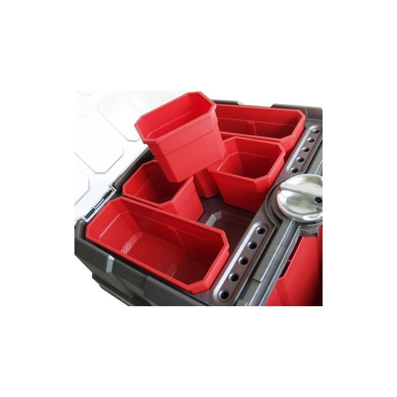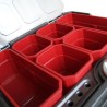 • Die im Inneren der Kiste enthaltenen Werkzeugbehälter lassen sich leicht herausnehmen, was die Arbeit mit den darin aufbewahrten Kleinteilen wie Schrauben, Muttern und Nägeln erheblich erleichtert.