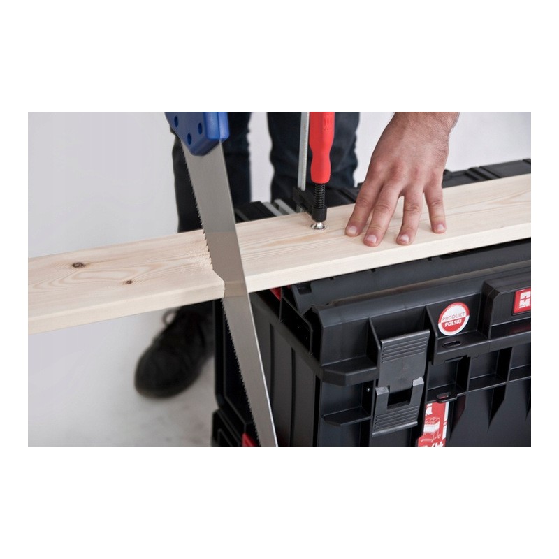 ONE 200 ist eine universelle, modulare Werkzeugkiste, die die Eigenschaften eines Behälters für mittelgroße Werkzeuge mit der Funktion eines Organizers verbindet. Dank der verstellbaren Trennwände und 6 herausnehmbaren Behältern kann jeder Nutzer eine für seine Bedürfnisse optimale Kombination zusammenstellen. Jeder Koffer ist mit einer elastischen Dichtung ausgestattet, die vollständigen Schutz vor dem Eindringen von Staub und Wasser gewährleistet.