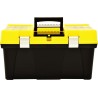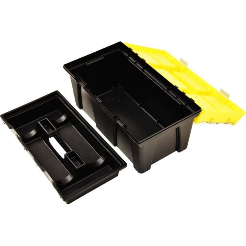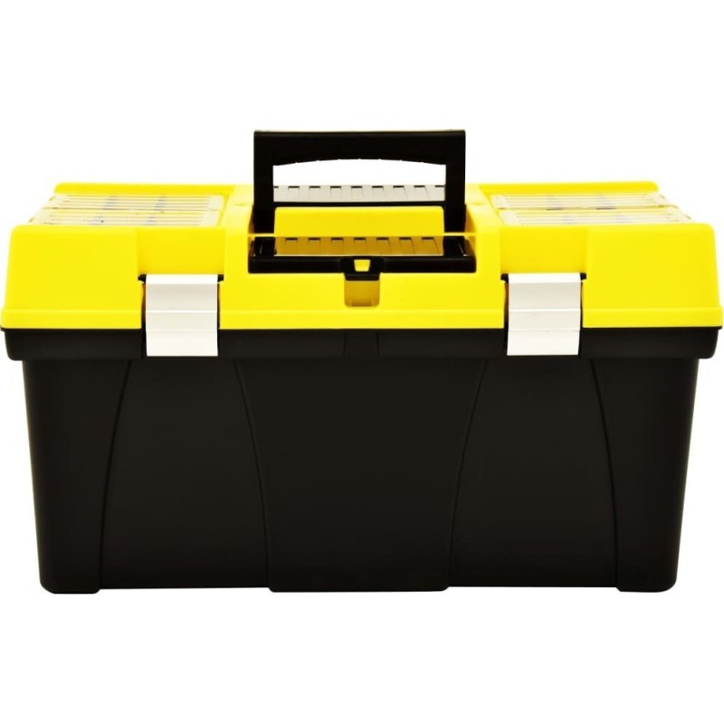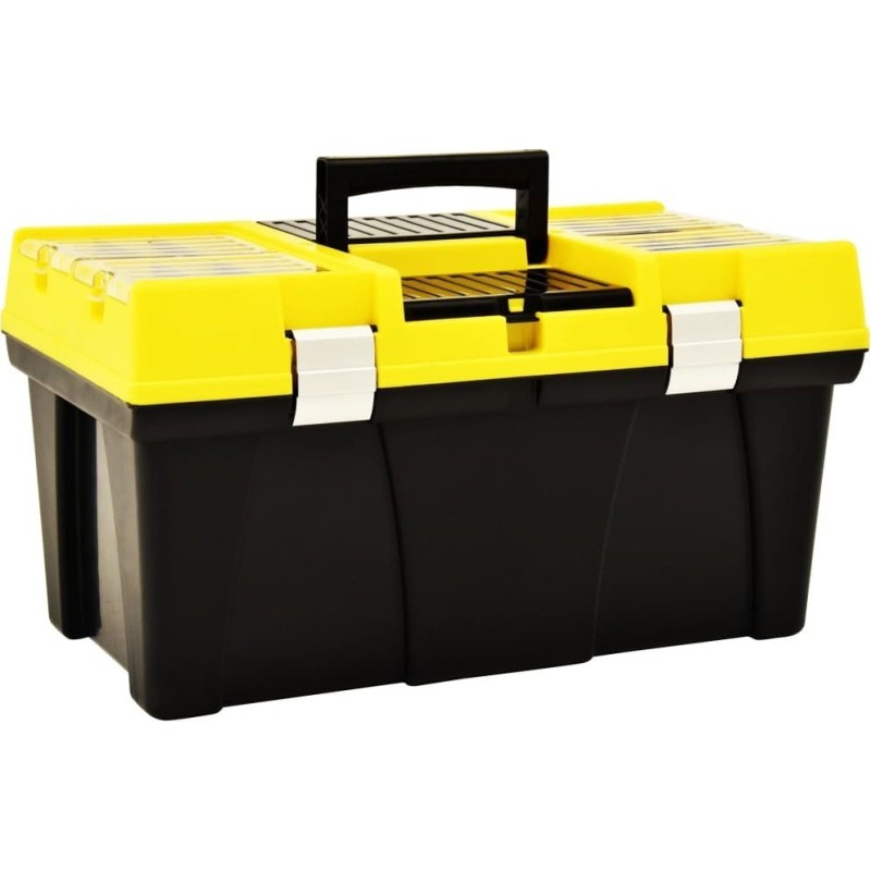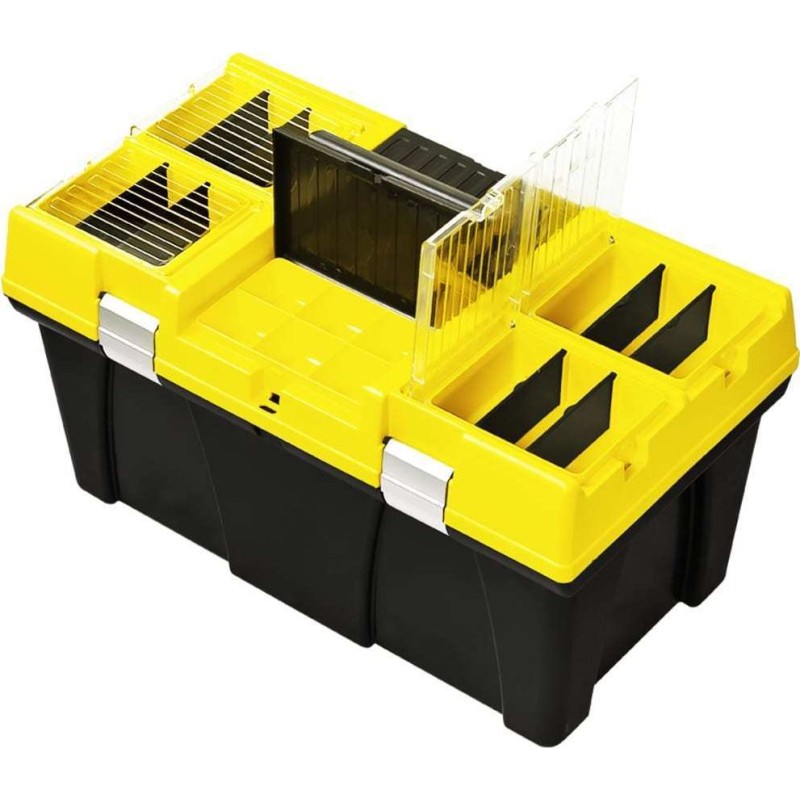 Der praktische Werkzeugorganizer ist eine hervorragende Wahl für alle, die beim Heimwerken und bei handwerklichen Arbeiten Wert auf Ordnung legen, sowie für Profis an ihrem Arbeitsplatz. Dank der Fächer mit transparenten Deckeln lassen sich Schrauben, Muttern, Nägel und andere Kleinteile leicht erkennen und finden. Verstellbare Fächer und tiefe Schalen mit Platz für Steckschlüsselaufsätze und Bits sorgen dafür, dass die Box Werkzeuge unterschiedlicher Größe aufnehmen kann und für jedes Einzelne Platz bietet. Ein benutzerfreundlicher Griff ermöglicht das Tragen der Box mit ihrem Inhalt.