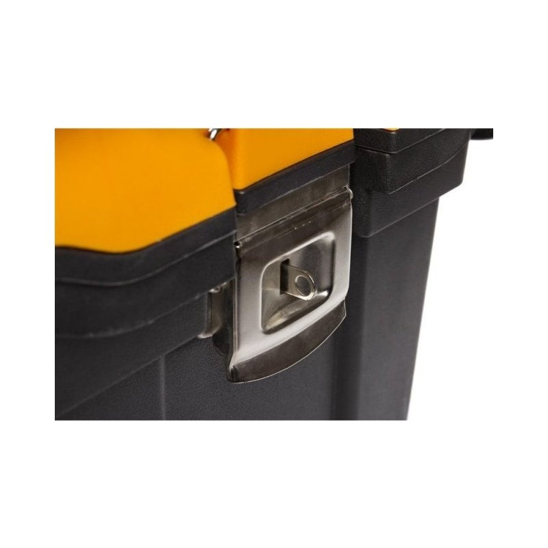Forte Tools TK-28 ist ein mobiler, großer Werkzeugkasten mit den Maßen 59,5 cm x 38 cm x 42 cm, gefertigt aus strapazierfähigem Metall und Kunststoff. Er verfügt über ein praktisches Ordnungssystem, das eine einfache Aufbewahrung von Werkzeugen und kleineren Materialien wie Schrauben oder Dübeln ermöglicht. Dank der Rollen und des Griffs lässt sich die Kiste bequem transportieren, und ein zusätzliches Schloss sorgt für die Sicherheit der aufbewahrten Gegenstände.