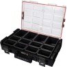 Ermöglicht die bequeme Aufbewahrung und den Transport kleiner Teile. Im YATO-Kisten-System bildet er den Basis-Organizer, der das Verbinden der Kisten mit weiteren Organizern ermöglicht.