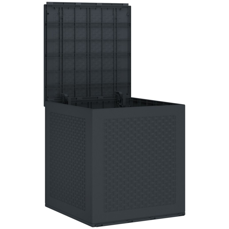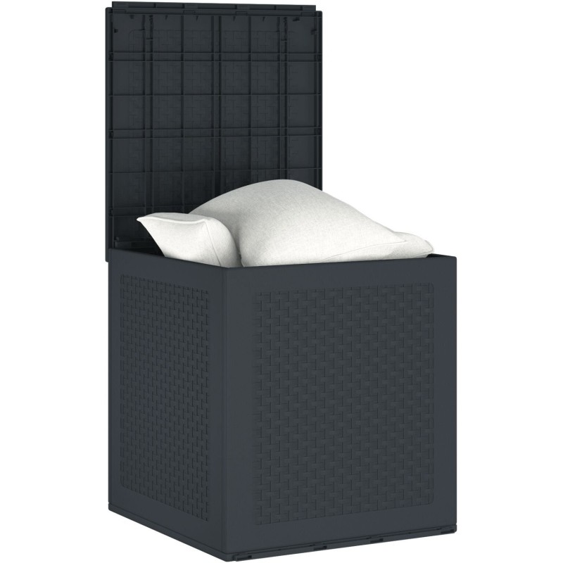 Diese anthrazitfarbene Aufbewahrungskiste ist eine hervorragende Lösung für die Organisation von Außenbereichen. Sie besteht aus robustem Kunststoff, der verschiedenen Witterungsbedingungen standhält. Dank ihres ansprechenden Designs und der matten Oberfläche passt sie perfekt auf den Balkon oder in die Garage und verbindet Stil mit Funktionalität.