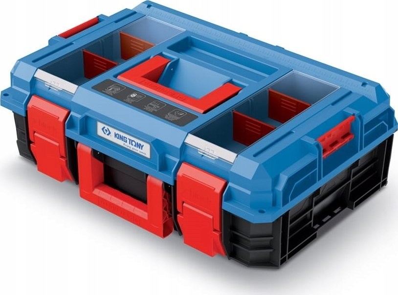 Professioneller Werkzeugkasten, der hervorragende Qualität, modernes Design und eine interessante Farbpalette vereint. Die Kasten sind sowohl für kleine als auch für große Kfz-Werkstätten, Reparaturbetriebe, Werkzeuglager sowie für alle gedacht, die viel Platz für Werkzeuge benötigen. Die Werkzeugkisten von KING TONY wurden aus Komponenten höchster Qualität gefertigt. Die modulare KING TONY-Kiste der Serie 87410 ist mit mehreren praktischen Lösungen ausgestattet, die den täglichen Gebrauch erleichtern:
