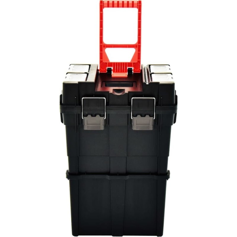 Der praktische Werkzeugorganizer ist ein hervorragendes Angebot für alle, die beim Heimwerken und bei handwerklichen Arbeiten Wert auf Ordnung legen, sowie für Profis an ihrem Arbeitsplatz. Dank der Fächer mit transparenten Deckeln kannst du Schrauben, Muttern, Nägel und andere Kleinteile leicht erkennen und finden. Tiefe Fächer mit Platz für Steckschlüsselaufsätze und Bits sorgen dafür, dass die Box Werkzeuge verschiedener Größen aufnehmen kann und für jedes Einzelne Platz bietet.
