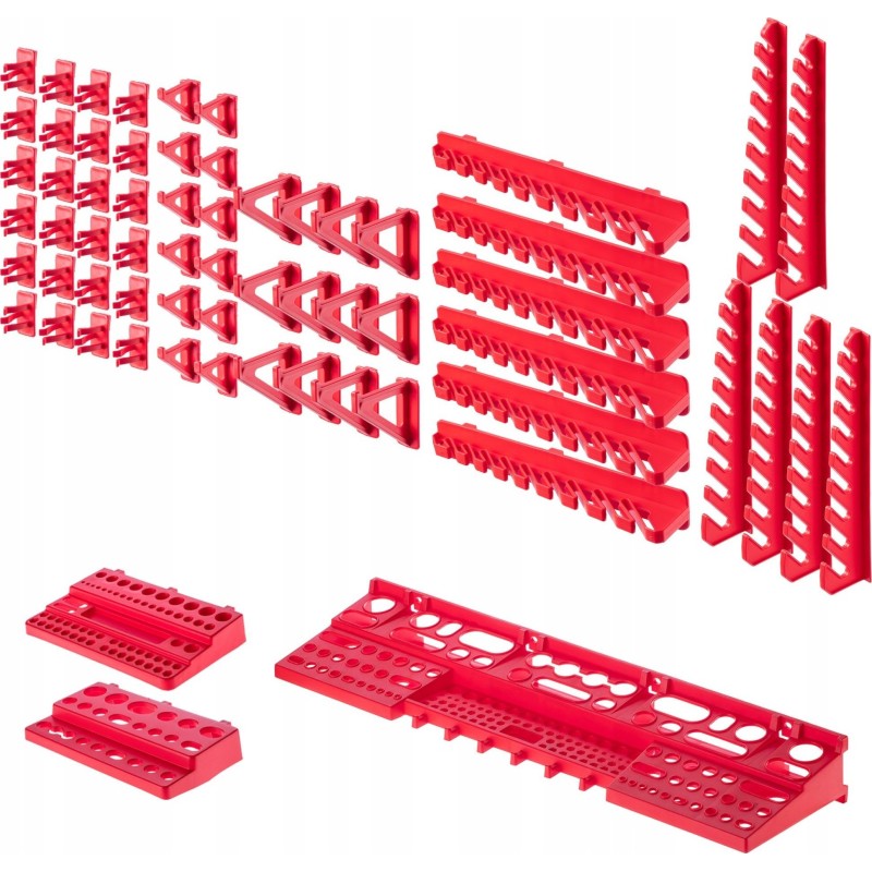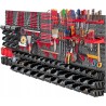 MODULARER AUFBAU – Die große Werkzeugtafel ist modular aufgebaut. Sie besteht aus vielen Elementen, die du frei konfigurieren und um weitere Module erweitern kannst. Die universelle Leiste ermöglicht das Aufhängen von Werkstattbehältern, Regalen sowie Werkzeughaltern.