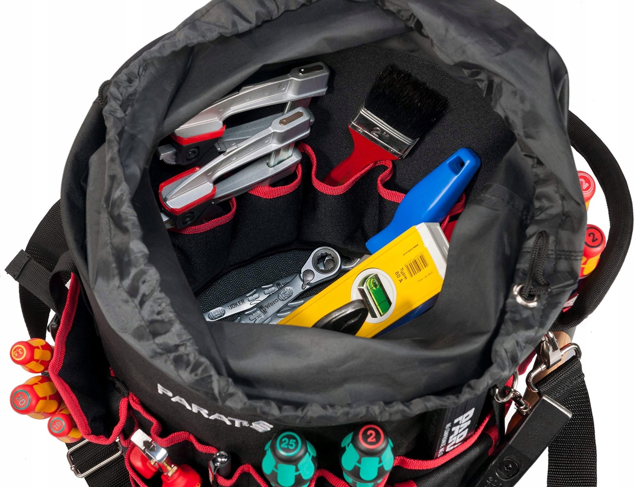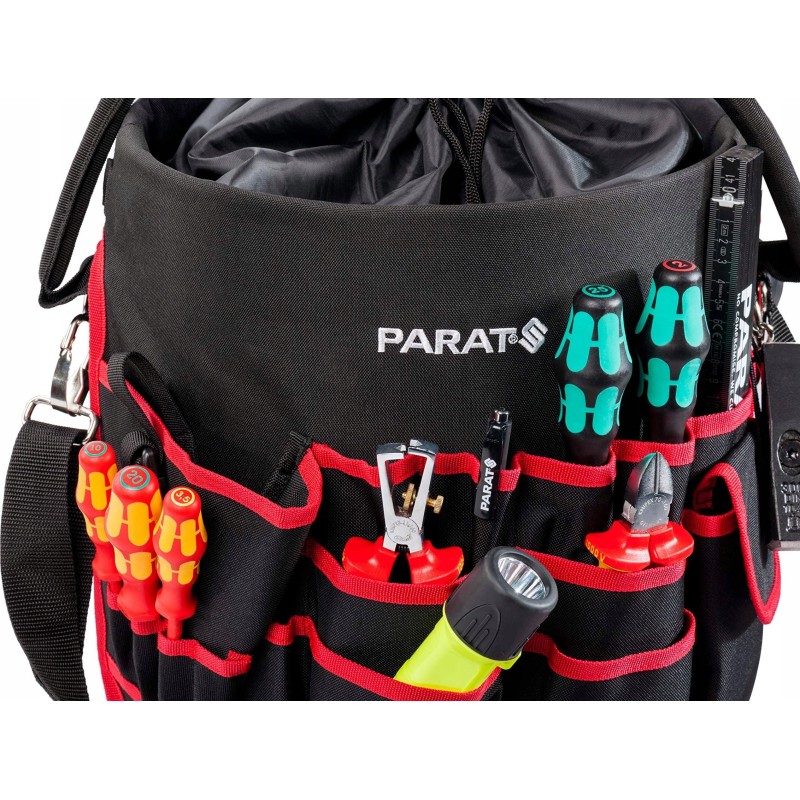 Zusätzlich verfügt die PARAT Basic Tool Bucket Werkzeugtasche über eine Tasche für einen Akku-Schrauber, einen Griff und einen Schultergurt, die einen bequemen Transport der Tasche ermöglichen. Das Set enthält keine Werkzeuge.