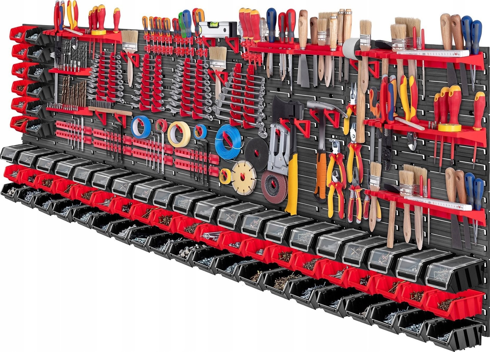 PERFEKTE ORGANISATION – Die große Werkstattwand ermöglicht Ihnen eine praktische und bequeme Anordnung aller Werkzeuge. Das im Set enthaltene nützliche Zubehör sorgt für die Sicherheit der aufbewahrten Gegenstände.