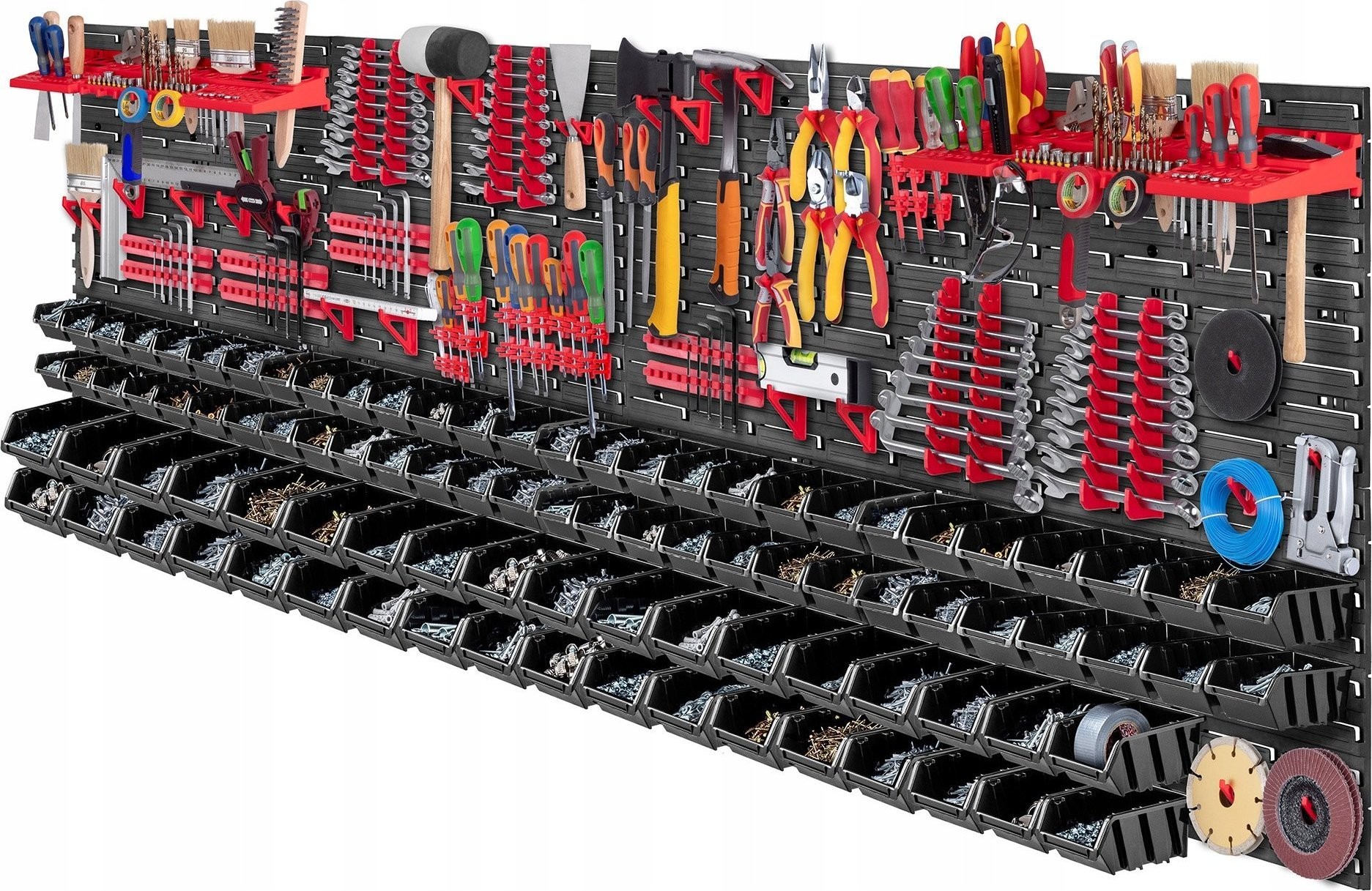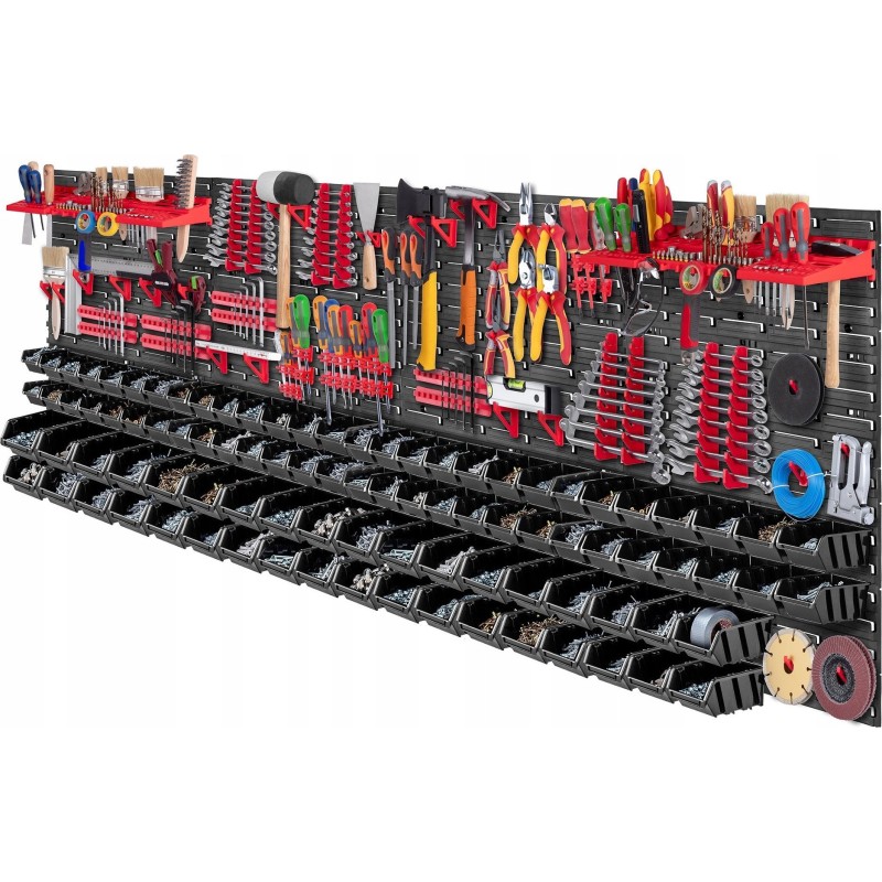 PERFEKTE ORGANISATION – Die große Werkstattwand ermöglicht Ihnen eine praktische und bequeme Anordnung aller Werkzeuge. Das im Set enthaltene nützliche Zubehör sorgt für die Sicherheit der aufbewahrten Gegenstände.