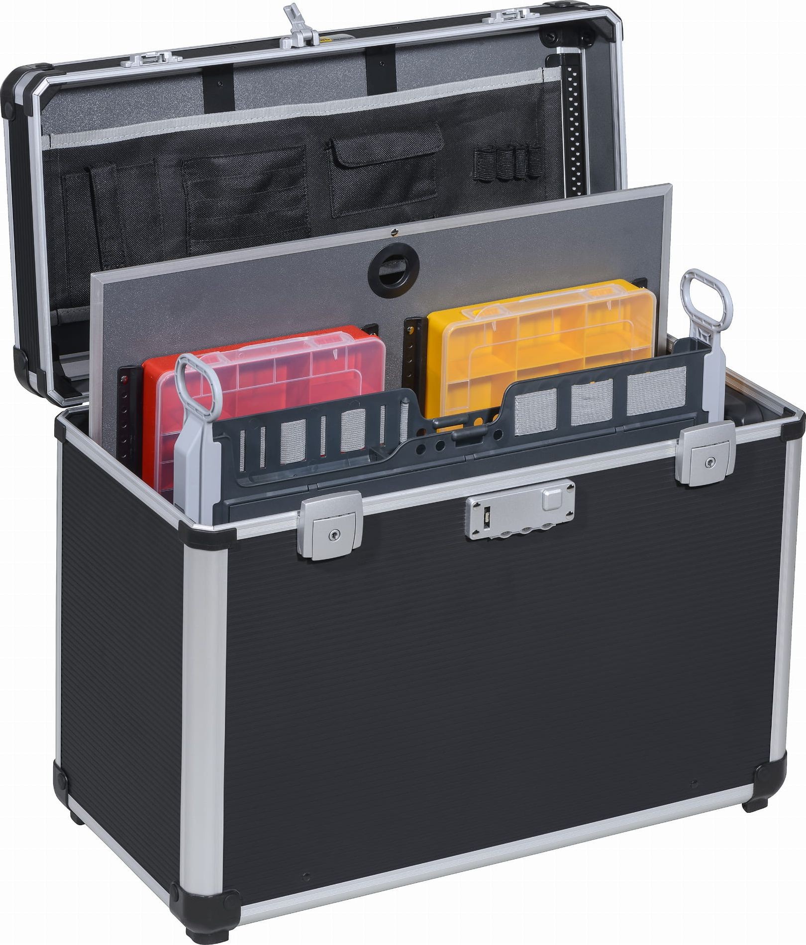 • Mit herausnehmbarer Trennwand, inklusive Sortimentskästen und ausziehbarem Werkzeughalter