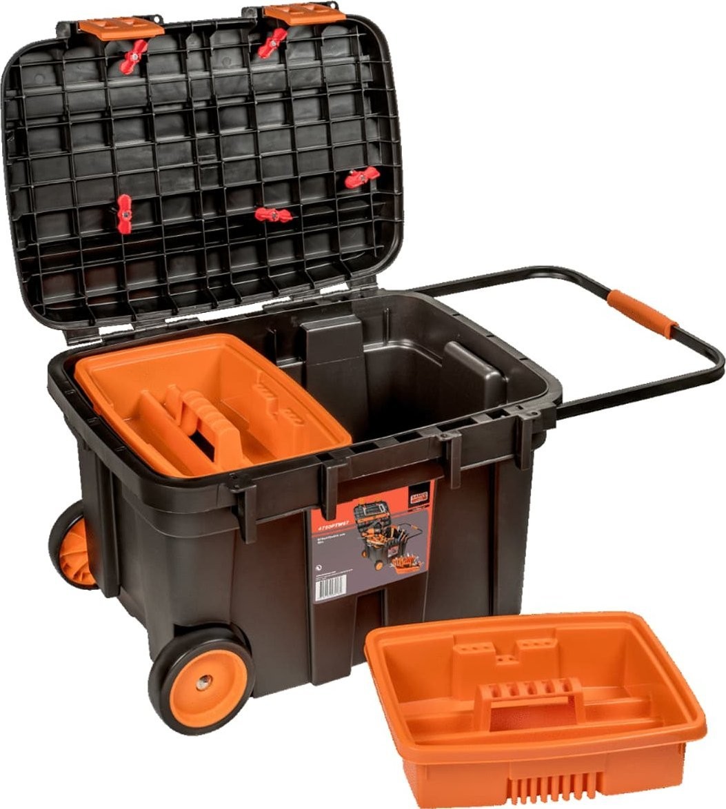 • Der stabile Griff ermöglicht einen einfachen Transport der Werkzeugkiste