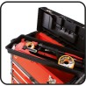 Das obere Modul ist ein klassischer Werkzeugkasten mit den Maßen 420 x 220 x 150 mm und einer Tragkraft von 20 kg. Es verfügt über 2 integrierte ausziehbare Organizer sowie eine Werkzeugablage. Die Module verfügen über eine flache Oberseite, die als Arbeitsfläche genutzt werden kann. Zudem sind sie mit einer Nut versehen, die beim Bohren oder Schrauben sehr nützlich ist. Darüber hinaus verfügen die Module über einen bequemen, rutschfesten Griff, seitliche Haltegriffe zum leichteren Anheben sowie rutschfeste Eckpolster an der Unterseite.