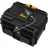 Das Ladegerät zeichnet sich durch eine robuste Bauweise aus, die sowohl beim Laden als auch beim Transport für Sicherheit sorgt. Metallklammern minimieren das Risiko eines versehentlichen Öffnens, und die Dichtung des Deckels schützt wirksam vor Feuchtigkeit, was unter schwierigen Arbeitsbedingungen besonders wichtig ist.