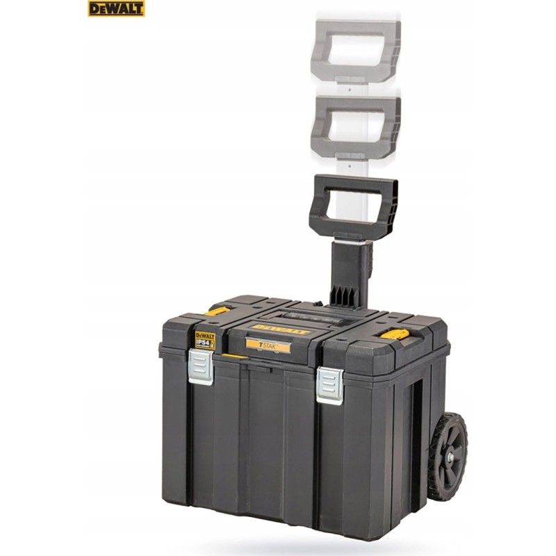 Mobiles TSTAK-Koffermodul, Systemkoffer auf Rollen der Marke DeWalt, aus hochfestem Kunststoff (IP54).