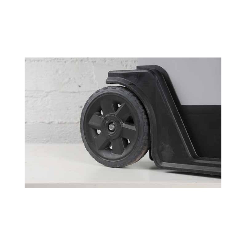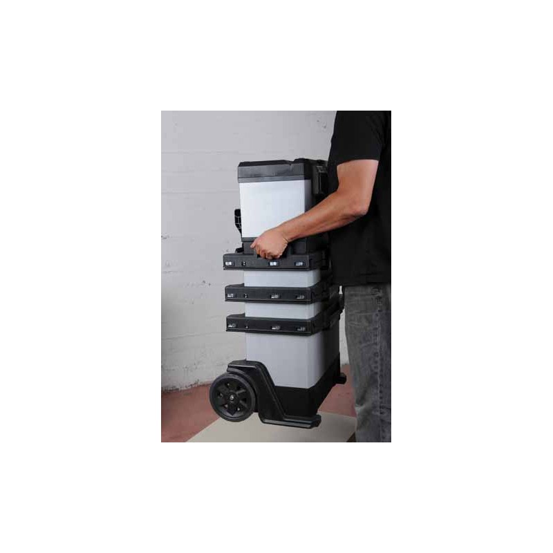 • Die Werkstatt ist mit 7-Zoll-Transportrollen und einem Teleskopgriff ausgestattet, die das Tragen der beladenen Kiste erleichtern