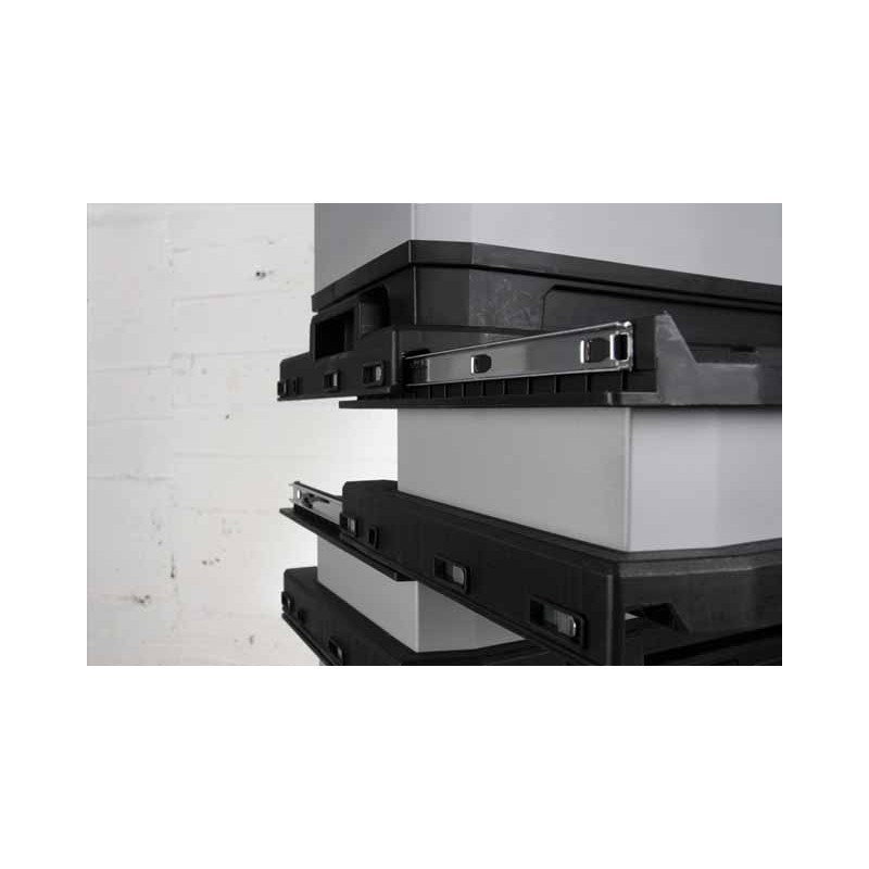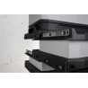 • Enthält drei separate Elemente: - eine abnehmbare Box mit einer Werkzeugablage und einem vertikalen Innenorganizer (20”), ausgestattet mit rostfreien Metallklammern - zwei tiefe Schubladen auf Kugelführungen - einen großen Metallbehälter für große und schwere Werkzeuge
