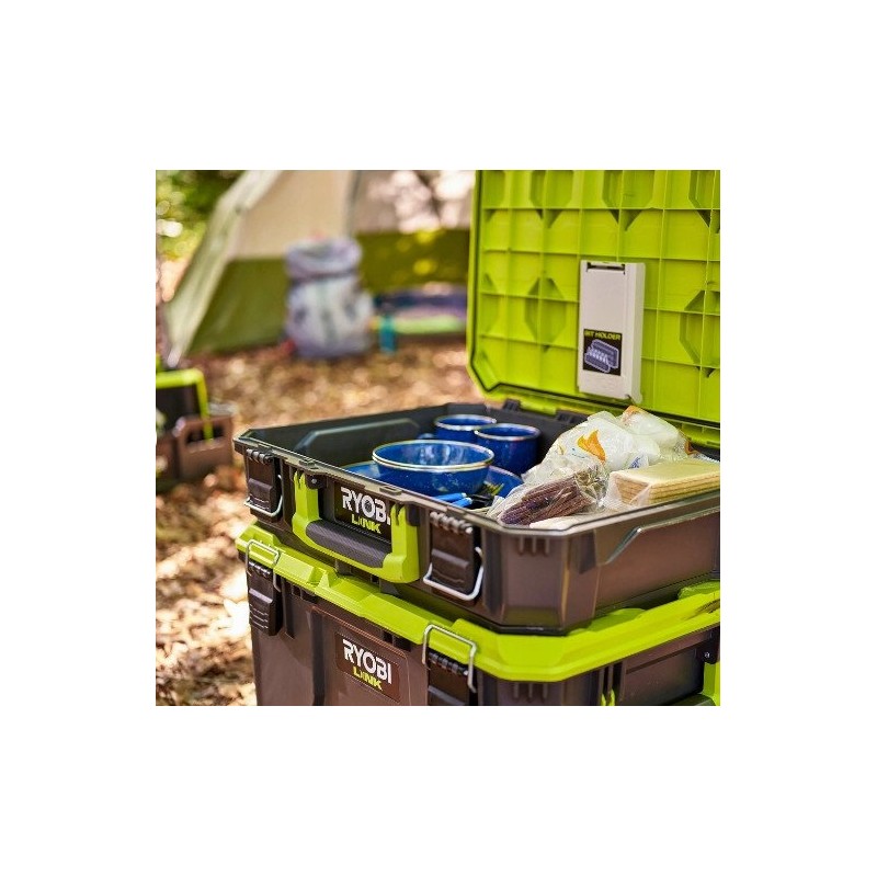 Die RYOBI LINK-Kiste ist Teil eines modernen Aufbewahrungssystems, das sich leicht an die individuellen Bedürfnisse des Benutzers anpassen lässt. Dank der Möglichkeit, sie mit anderem Zubehör zu kombinieren, lässt sich die ideale Lösung für die Organisation von Werkzeugen schaffen.