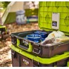 Die Kiste verfügt über ein integriertes Fach für Zubehör sowie mitgelieferte Behälter, was für maximale Organisation sorgt. So sind alle Werkzeuge und Zubehörteile immer griffbereit.