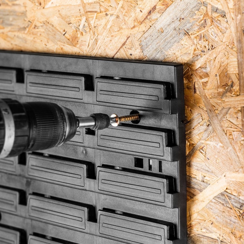 EINFACHE MONTAGE – Die Montage der Werkzeugtafel ist dank der gleichmäßig angeordneten Bohrlöcher relativ einfach. Du musst die Tafel lediglich mit Dübeln an der Wand befestigen und das Zubehör aufhängen, um dich an einem stabilen Ordnungssystem zu erfreuen.