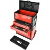Das obere Modul ist ein klassischer Werkzeugkasten mit den Maßen 420 x 220 x 150 mm und einer Tragkraft von 20 kg. Es verfügt über 2 integrierte ausziehbare Organizer sowie eine Werkzeugschale. Zusätzlich befindet sich im Inneren des Kastens ein Einsatz mit Werkzeugen: