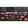 • 12-kant-Steckschlüsseleinsätze 1/2" (12,7 mm) in den Größen: 8, 10, 12, 13, 14, 15, 16, 17, 18, 19, 20, 21, 22 mm aus hochwertigem CrV-Stahl 50BV30