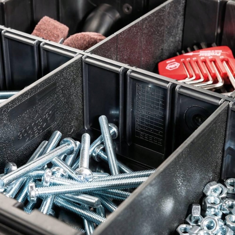 • Mit robusten Werkzeugplatten aus Con-Pearl® (kratzfest, formstabil, beständig gegen Feuchtigkeit, Fette und Chemikalien)