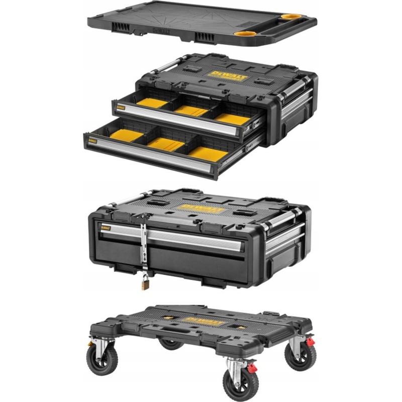 Das Set DWST60510-1 TOUGHSYSTEM 2.0 DXL ist eine zuverlässige Lösung für jeden Profi, der ein robustes, funktionales und leicht zu transportierendes Werkzeugaufbewahrungssystem benötigt. Vertrauen Sie auf TOUGHSYSTEM 2.0 DXL und genießen Sie Komfort und Arbeitssicherheit auf höchstem Niveau!