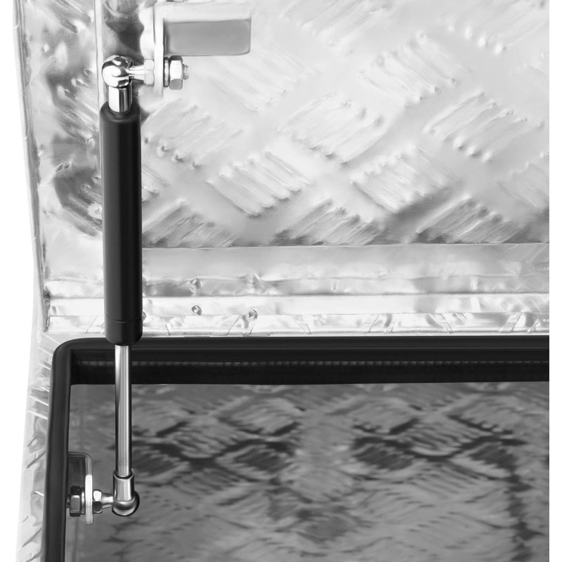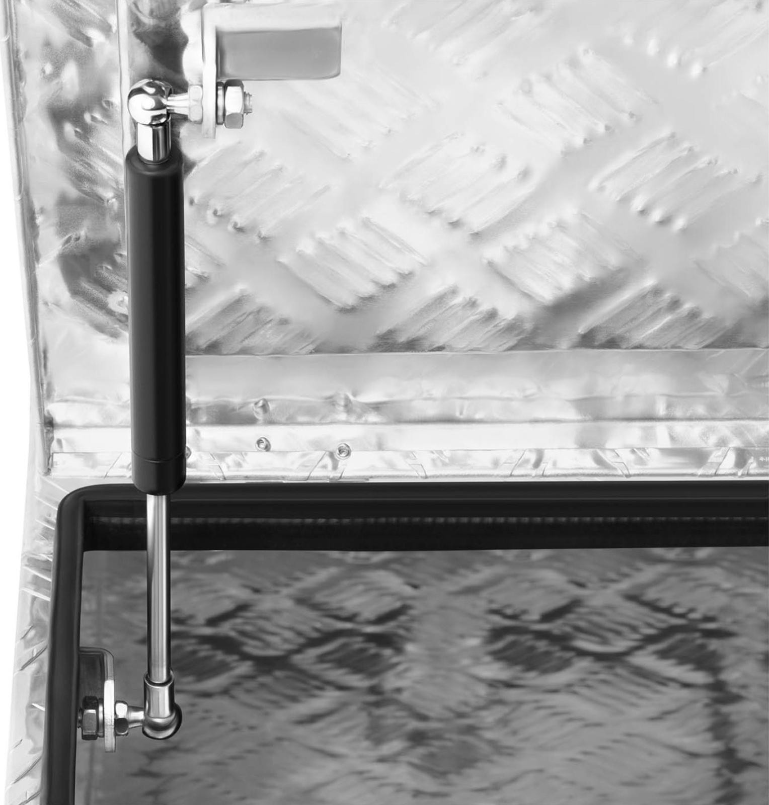 transportiert werden müssen. Die Konstruktion der Kiste besteht aus Aluminium, ist leicht, korrosionsbeständig , langlebig und ungiftig sowie unempfindlich gegenüber den meisten Chemikalien. Sie schützt die Werkzeuge vor Sonneneinstrahlung, Feuchtigkeit und mechanischen Beschädigungen. Die Wände sind 1,5 mm dick . Das große Fassungsvermögen von 280 Litern bietet Platz für viele Gegenstände. Teleskopstützen am Deckel ermöglichen ein bequemes Öffnen der Kiste. Eingebaute Schlüsselschlösser sorgen für Sicherheit.