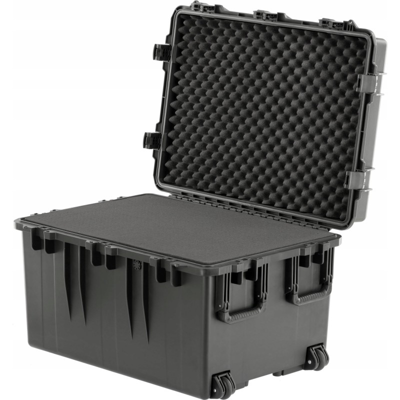 Hermetischer, wasser- und staubdichter Koffer, beständig gegen zahlreiche Chemikalien und Korrosion. Hergestellt aus flexiblem Polypropylen, das die Schutzklasse IP55 erfüllt. Er zeichnet sich durch ein effektives Dichtungssystem und ein verstärktes Druckausgleichsventil aus, das dem Druckausgleich während des Lufttransports dient. Mit Vorhängeschloss abschließbar. Im Inneren des Koffers befindet sich ein vorgeschnittener Schaumstoff, der sich individuell an bestimmte Produkte wie Werkzeuge, Fotoausrüstung oder Messgeräte anpassen lässt.