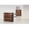 Der Block kann sowohl horizontal als auch vertikal aufgestellt werden, was seine Vielseitigkeit erhöht und es ermöglicht, ihn an individuelle Bedürfnisse und die Anordnung der Küche anzupassen. Eine Lösung, die sicherlich jeder Kochliebhaber zu schätzen weiß.