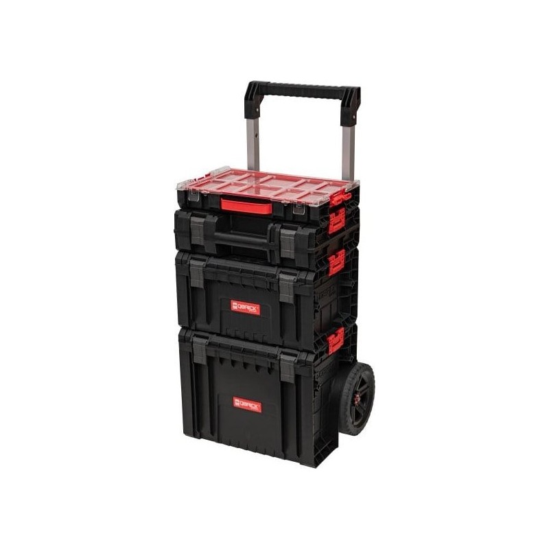 Das Set zeichnet sich durch hohe Verarbeitungsqualität und Funktionalität aus. Der Werkzeugwagen ist mit Schubladen unterschiedlicher Tiefe ausgestattet, was die Aufbewahrung vielfältiger Werkzeuge ermöglicht. Die Werkzeugkiste enthält sechs herausnehmbare Behälter, und die Werkzeugtasche verfügt über verstellbare Fächer, was eine sichere Aufbewahrung gewährleistet. Der Organizer ist eine praktische Lösung für den Transport kleinerer Zubehörteile.