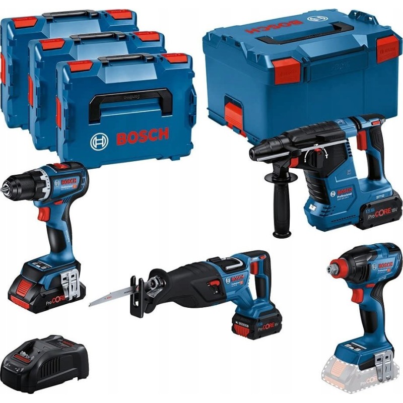 Bosch Professional Werkzeugset GSR 18V-90C + GDX 18V-210C + GBH 18V-24C + GSA 18V-28, in L-BOXX