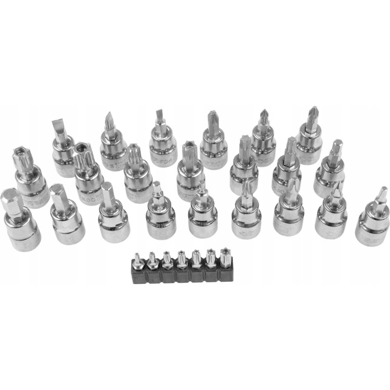 Das Set enthält eine große Auswahl an Steckschlüsseleinsätzen, sowohl in metrischen als auch in Zoll-Größen. Die angebotenen Sechskant-Steckschlüsseleinsätze in verschiedenen Größen ermöglichen die Arbeit mit einer Vielzahl von Schrauben und Muttern, was das Set äußerst vielseitig macht.