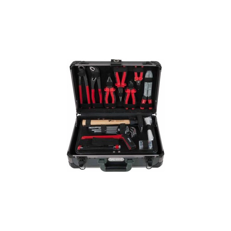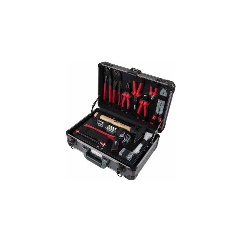 Dieser praktische Werkzeugsatz kann für alle Arten von Reparaturen oder Heimwerkerarbeiten im Haus, in der Werkstatt und in der Garage verwendet werden. Er besteht aus ergonomisch geformten Werkzeugen in verschiedenen Größen, die aus Chrom-Vanadium-Stahl mit matter Oberfläche gefertigt sind. Diese robusten und langlebigen Werkzeuge werden in einem praktischen Koffer geliefert, sodass sie leicht zu transportieren und aufzubewahren sind.
