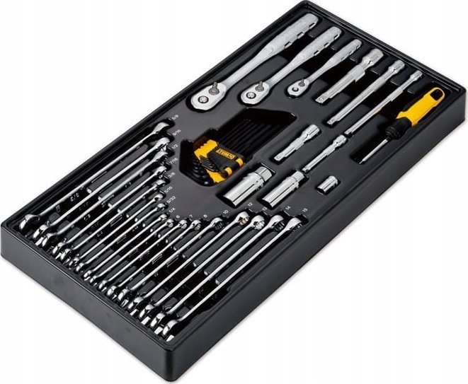 DEWALT SCHRAUBENSCHLÜSSEL-SATZ 341-teilig (Herstellercode: DWMT45341-1) ist ein umfangreicher Satz mechanischer Werkzeuge, der sicherlich die Erwartungen jedes Heimwerkers erfüllen wird. Er enthält ganze 341 Teile, darunter Schraubenschlüssel und Steckschlüsseleinsätze in drei gängigen Größen: 1/4", 3/8" und 1/2". Mit diesem Set wird die Umsetzung jedes Projekts einfacher und effizienter.