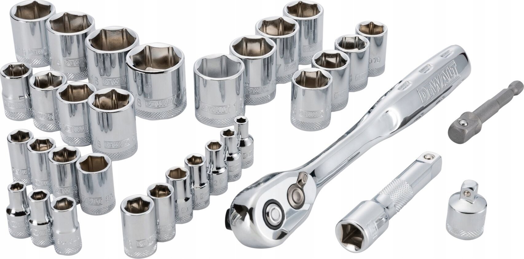 Das Dewalt-Werkzeugset zeichnet sich durch eine große Auswahl an Steckschlüsseleinsätzen aus, die die Durchführung vielfältiger Aufgaben ermöglichen. Ganz gleich, ob Sie Werkzeuge für kleine Reparaturen zu Hause oder für komplexere Projekte benötigen, dieses Set wird Ihre Erwartungen mit Sicherheit erfüllen.