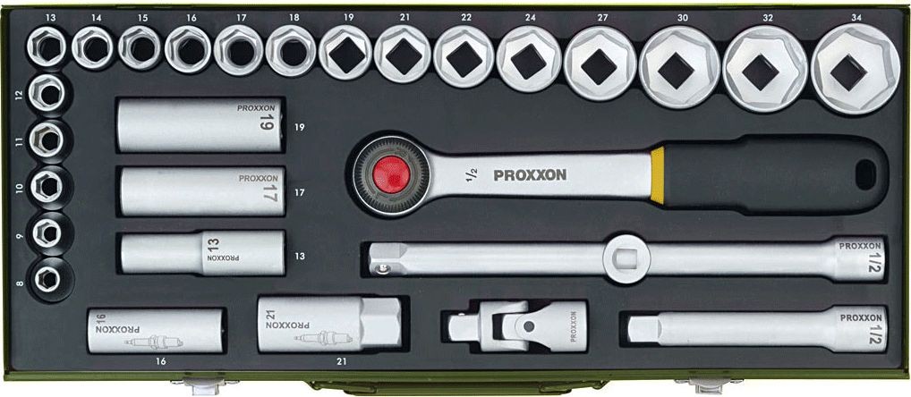 Das ½-Zoll-Steckschlüsselset von PROXXON ist die beste Wahl für jeden Profi und Heimwerker. Durch die Auswahl praktischer Teile findet es bei der Ausführung verschiedener Arbeiten Anwendung. Dank der Verwendung hochwertiger Legierungen zeichnen sich die Werkzeuge durch eine Robustheit aus, die alle Nutzer zufriedenstellt und es ermöglicht, sie an individuelle Bedürfnisse und Vorlieben anzupassen. Entscheiden Sie sich für PROXXON-Schraubenschlüssel und überzeugen Sie sich selbst davon, wie nützlich und praktisch sie sind.