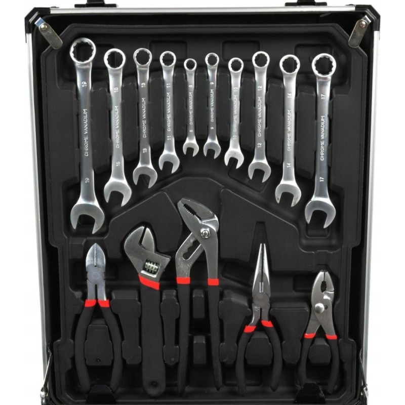 Das Set enthält eine breite Palette an Werkzeugen, darunter Zangen, Schraubenschlüssel, Schraubendreher und viele weitere Zubehörteile. So haben Sie alles, was Sie für die Erledigung vielfältiger Aufgaben benötigen. Ganz gleich, ob Sie Werkzeuge für kleinere Reparaturen oder größere Projekte benötigen, dieses Set wird Ihre Erwartungen mit Sicherheit erfüllen.
