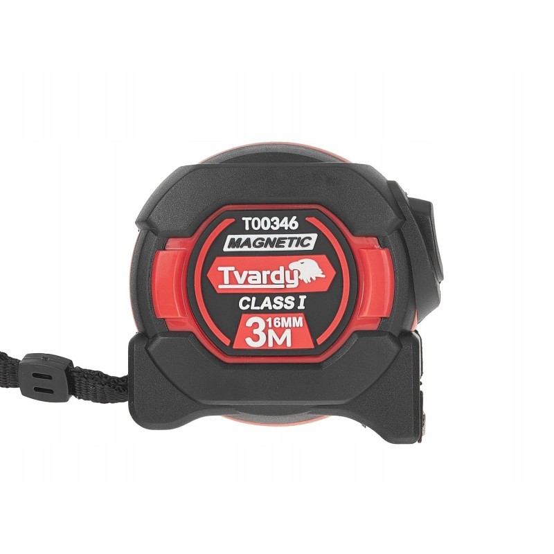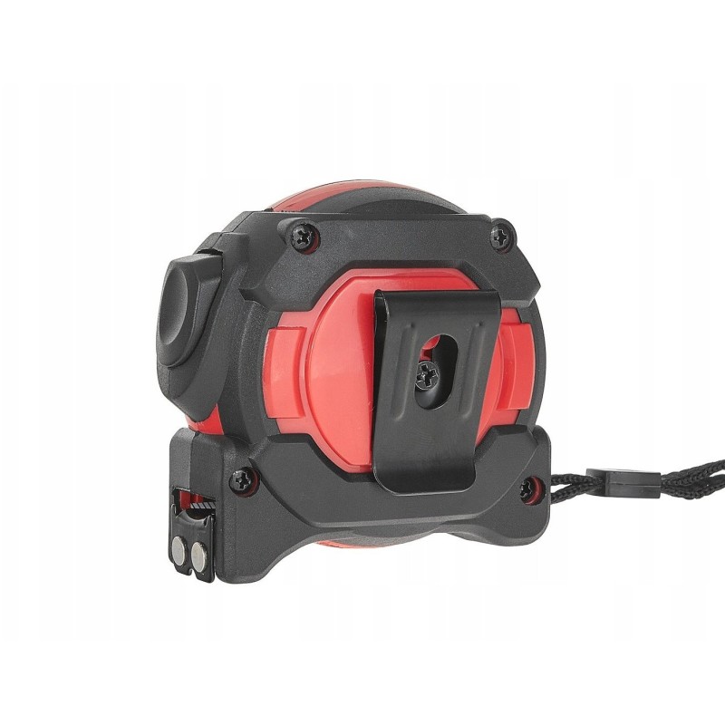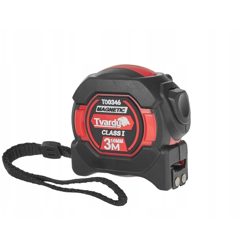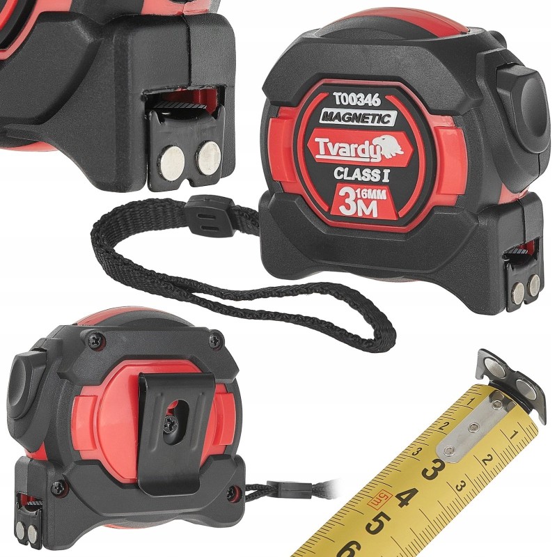 Das Tvardy-Rollmaß zeichnet sich durch ein gummiertes Gehäuse aus, das Stoßfestigkeit und einen sicheren Halt gewährleistet. Darüber hinaus ermöglicht ein Stahlclip das einfache Befestigen des Maßbandes am Gürtel oder an der Hosentasche, und eine Handschlaufe sorgt für zusätzliche Sicherheit bei der Arbeit.
