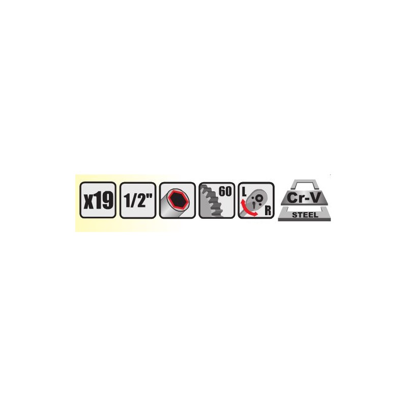 • Steckschlüsselgrößen: 8, 9, 10, 11, 12, 13, 14, 15, 16, 17, 19, 21, 22, 23, 24, 27, 30, 32 mm