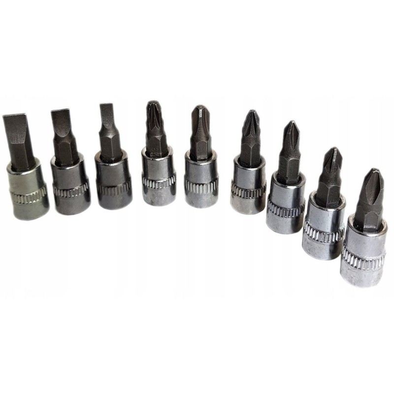 Neben den Steckschlüsseln enthält das Set außerdem 10 Bits, darunter Schlitz- und Kreuzschlitzbits (PH1, PH2) sowie TX-Bits (TX10, TX15, TX20). Dadurch hat der Anwender die Möglichkeit, vielfältige Aufgaben zu erledigen, was die Funktionalität des Sets erhöht.