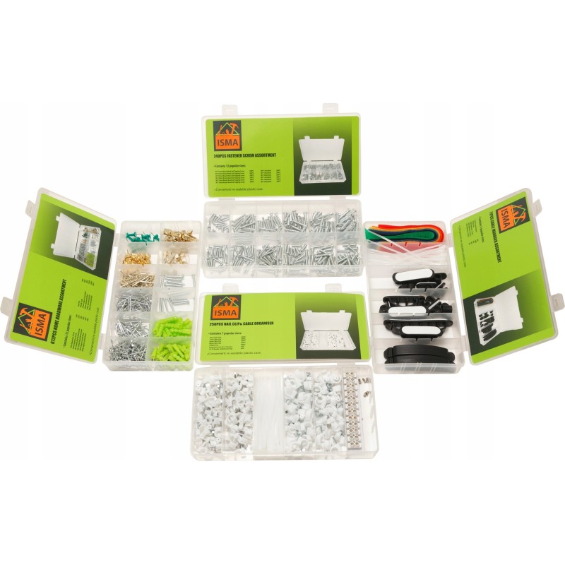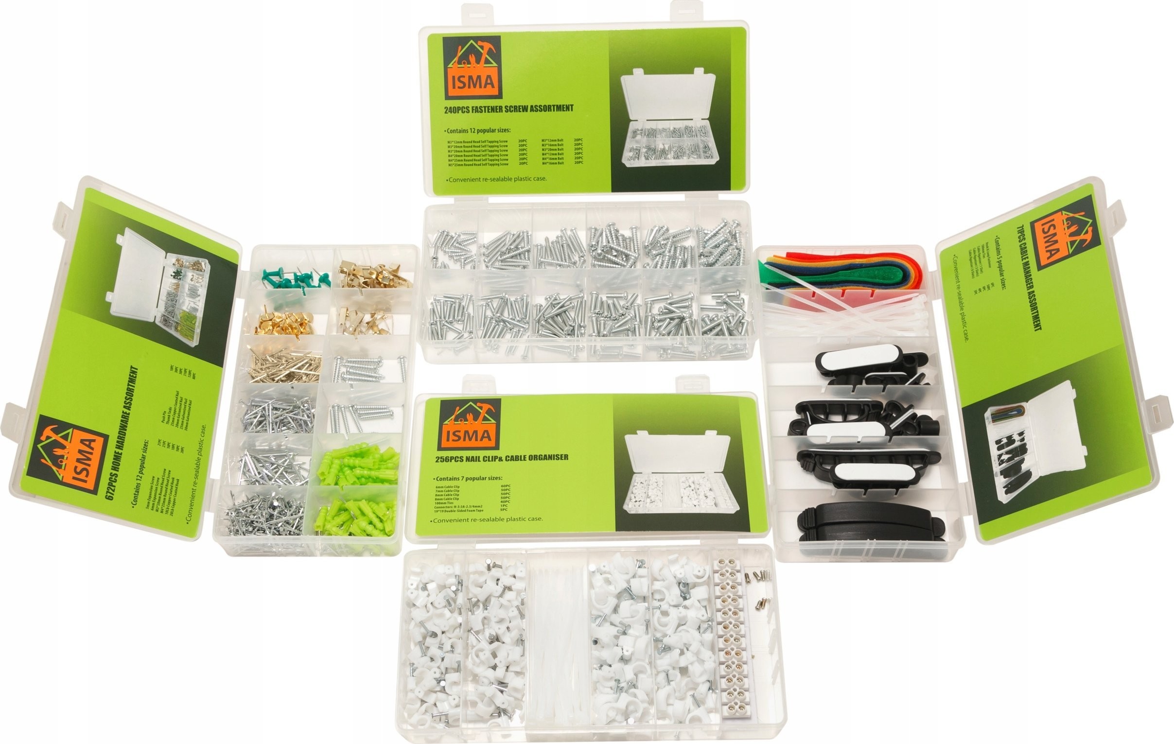 • 1239 Stück Befestigungsmaterial-Set: Schrauben, Dübel, Kabelbinder usw.