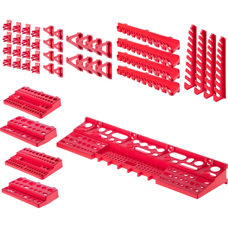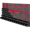 MODULARER AUFBAU – Die gigantische Werkzeugwand ist modular aufgebaut. Sie besteht aus vielen Elementen, die frei konfiguriert und um weitere Module erweitert werden können. Die profilierte Kante ermöglicht das Aufhängen von Werkstattwürfeln, Kisten sowie Werkzeughängern.