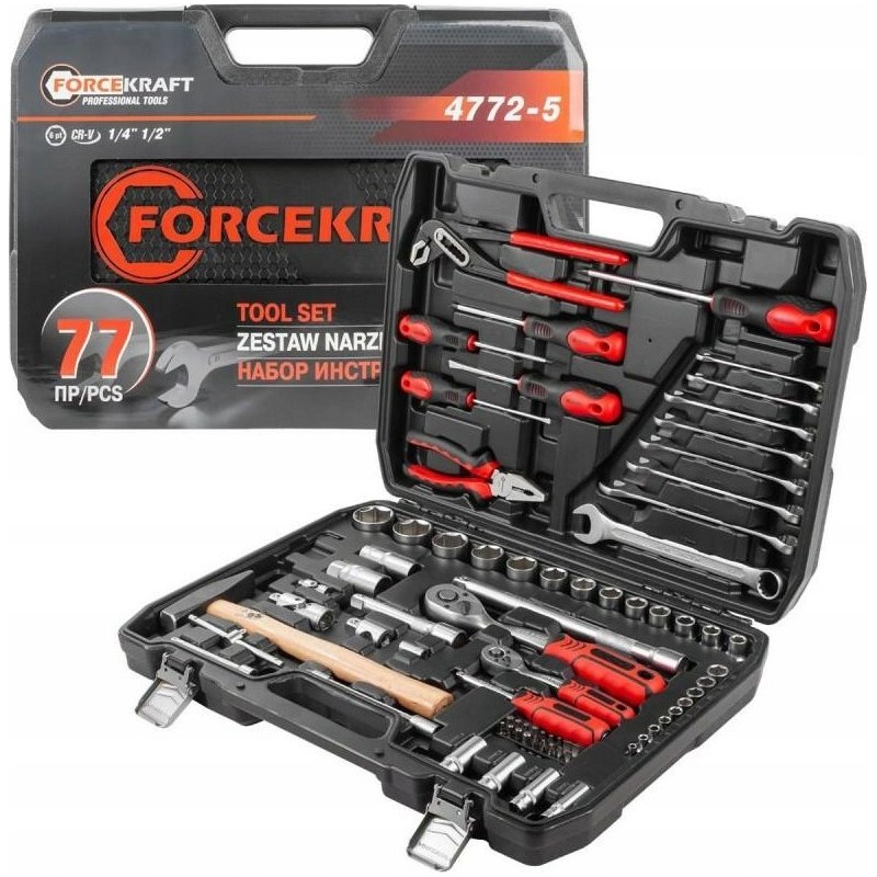 Forcekraft-Werkzeugsatz 1/4"- und 1/2"-Werkzeugsatz, 77-teilig (4–32 mm) (Sechskant)
