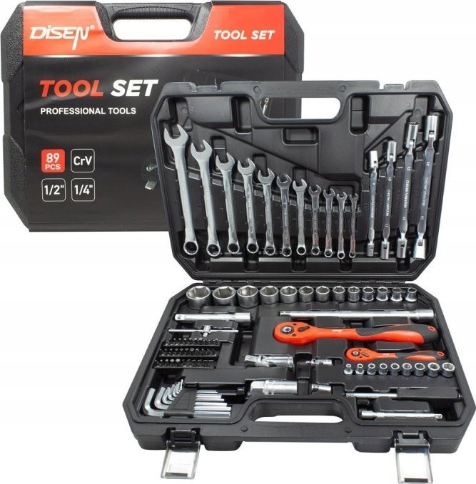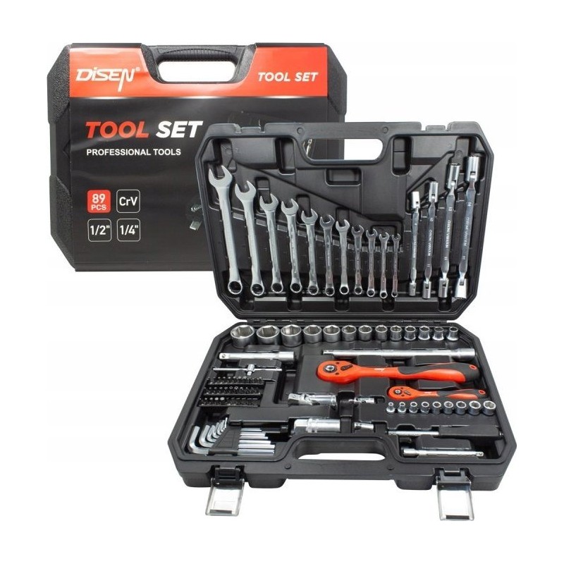 WERKZEUGSET MIT STECKSCHLÜSSELN UND BITS 1/2" 1/4" 89-teilig