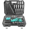 Das Set enthält Steckschlüssel in drei verschiedenen Größen: 1/4", 3/8" und 1/2". Dadurch haben Sie die Möglichkeit, mit verschiedenen Arten von Schrauben und Muttern zu arbeiten, was dieses Set äußerst vielseitig macht. Werkzeuge mit Abmessungen von 4 bis 32 mm gewährleisten ein breites Anwendungsspektrum.
